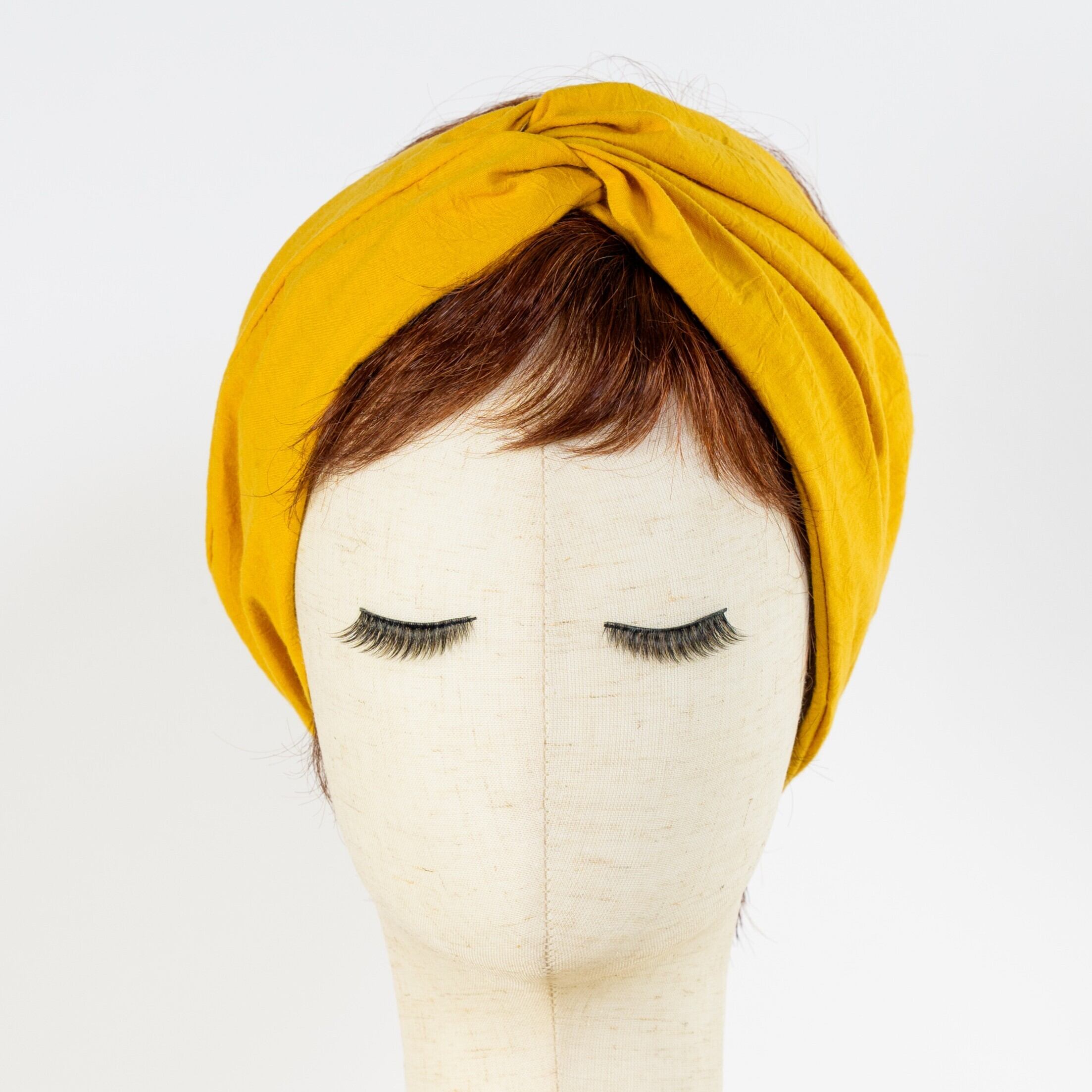 お客様のスタイルをサポートする幅広ソフトターバン マスタードで新しい自分を見つけてみてください!