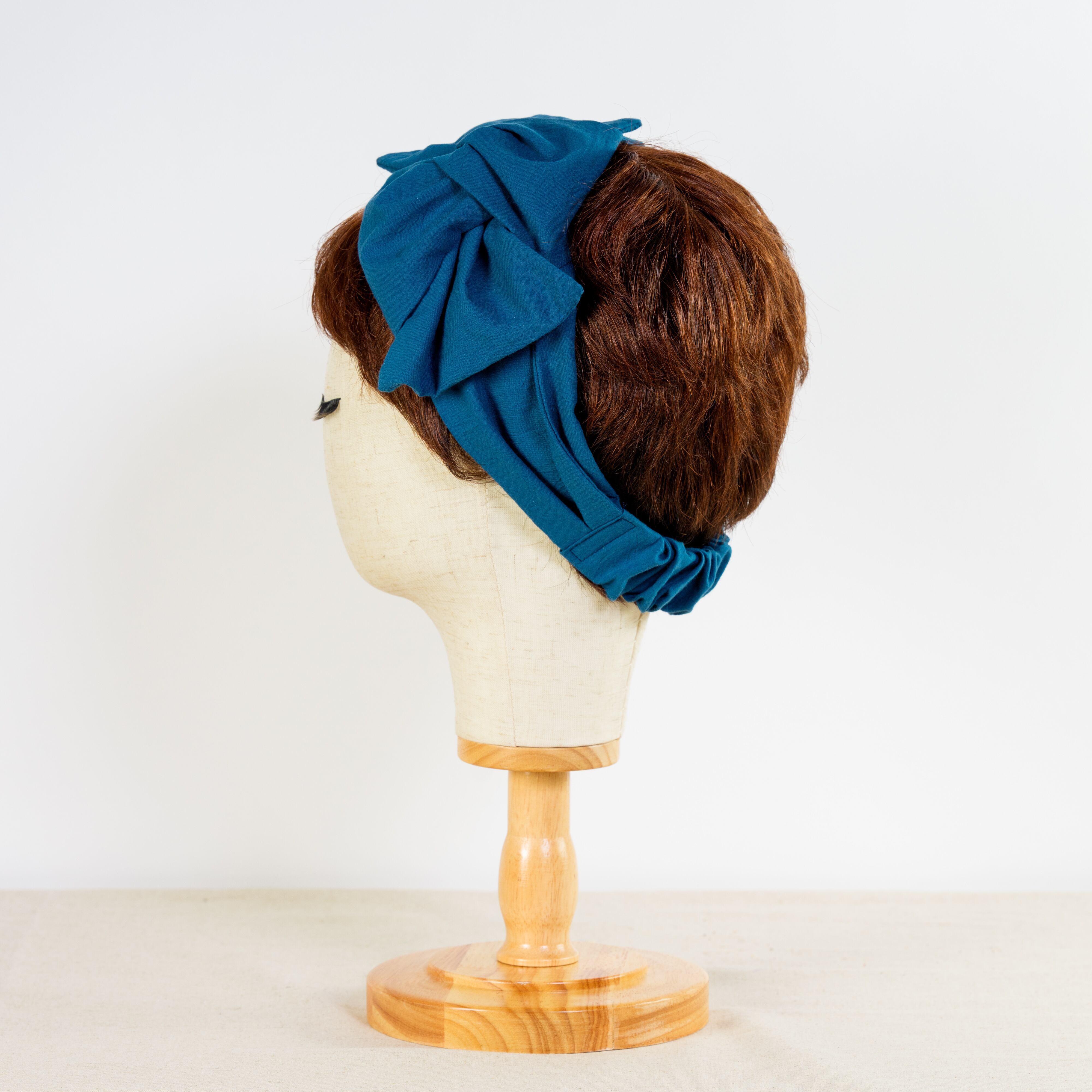 耳の後ろ側にクリップを留めてご使用ください。ターバンの端を耳の上までかぶせるとバランスが良く、安定した着け心地に。白髪隠しやウイッグ抑えにもなり装いの幅が広がります。