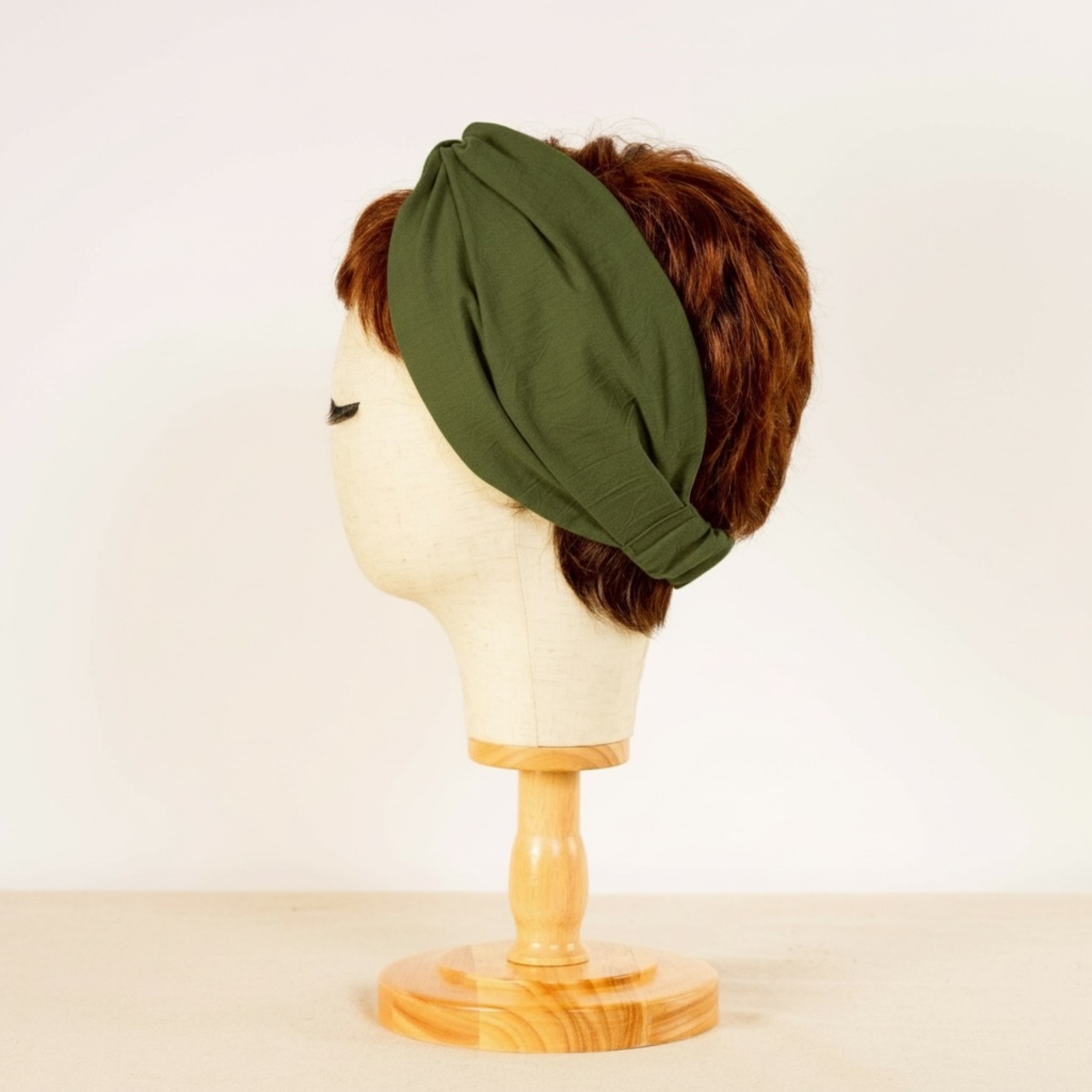 お客様のスタイルをサポートする幅広ソフトターバン カーキで新しい自分を見つけてみてください!