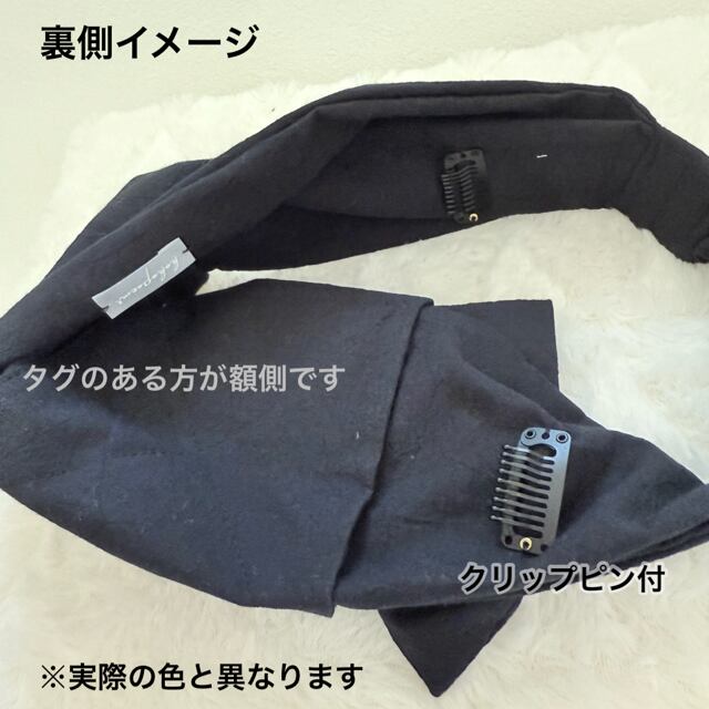 耳の後ろ側にクリップを留めてご使用ください。ターバンの端を耳の上までかぶせるとバランスが良く、安定した着け心地に。白髪隠しやウイッグ抑えにもなり装いの幅が広がります。